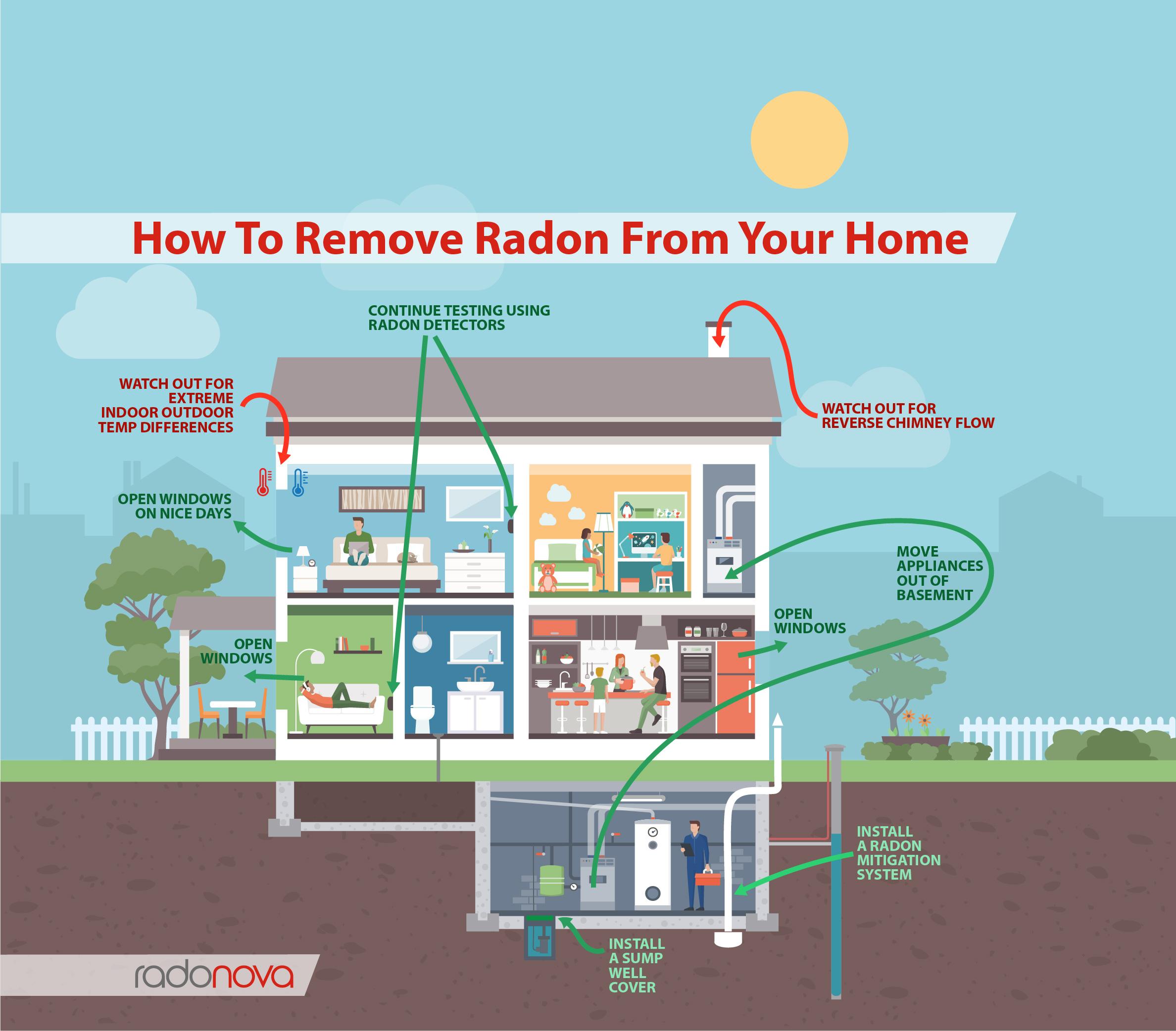 - When the weather is nice, open windows and doors, to allow radon gas to dissipate with the fresh air.